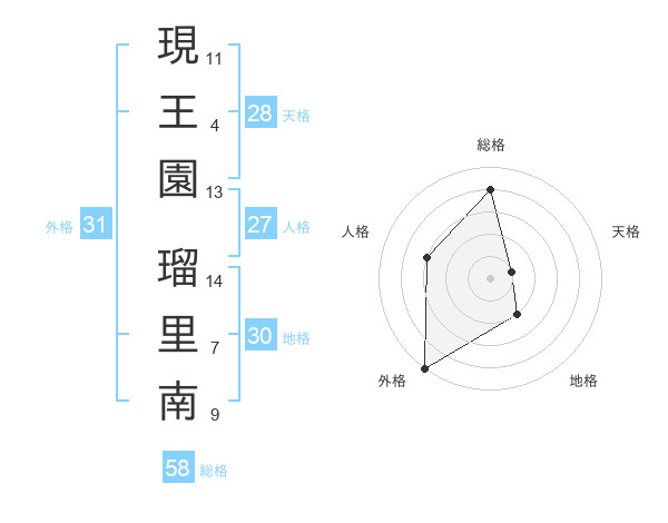 現王園 瑠里南さんを姓名の画数から五運を鑑定