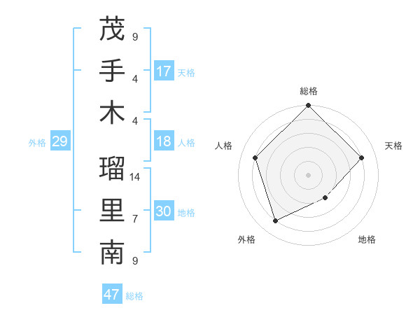 茂手木 瑠里南さんを姓名の画数から五運を鑑定