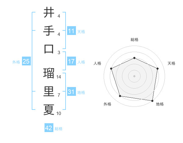 井手口 瑠里夏さんを姓名の画数から五運を鑑定
