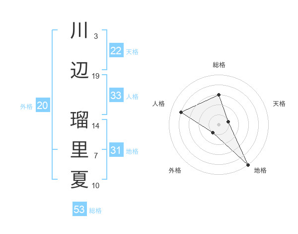川辺 瑠里夏さんを姓名の画数から五運を鑑定