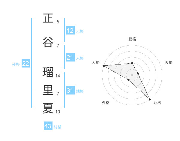 正谷 瑠里夏さんを姓名の画数から五運を鑑定