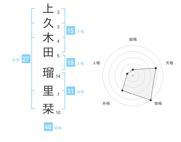 上久木田 瑠里栞さんを姓名の画数から五運を鑑定