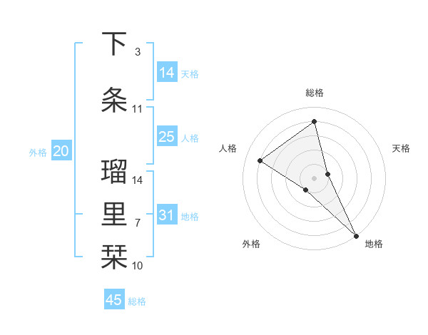 下条 瑠里栞さんの地格は31画の5点!