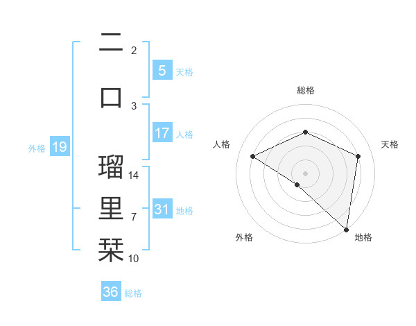 二口 瑠里栞さんを姓名の画数から五運を鑑定