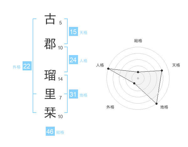 古郡 瑠里栞さんを姓名の画数から五運を鑑定