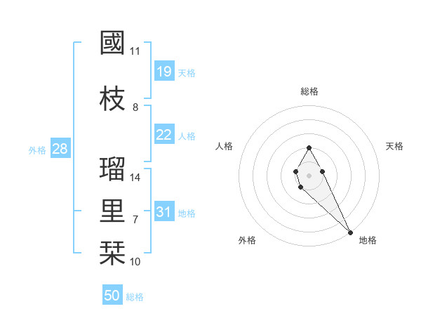 國枝 瑠里栞さんを姓名の画数から五運を鑑定
