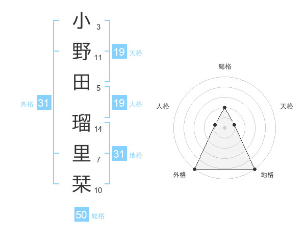 小野田 瑠里栞さんの外格は31画の5点!