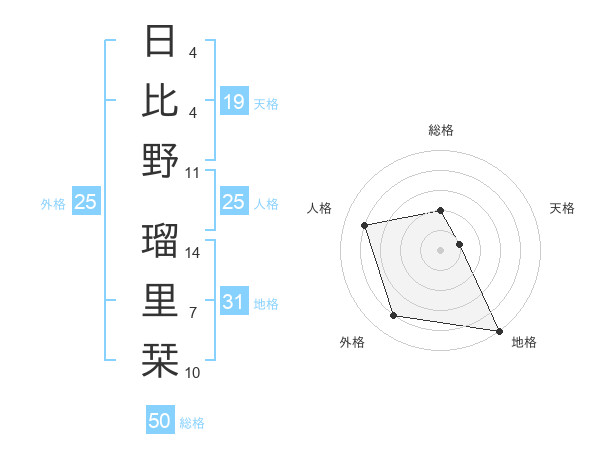 日比野 瑠里栞さんを姓名の画数から五運を鑑定