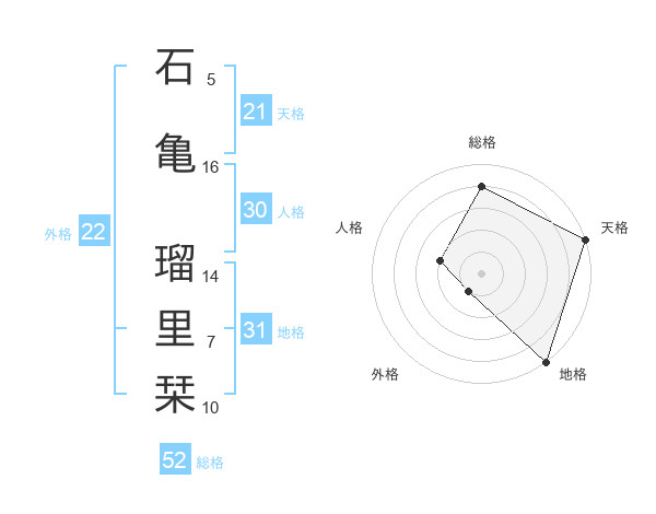 石亀 瑠里栞さんを姓名の画数から五運を鑑定