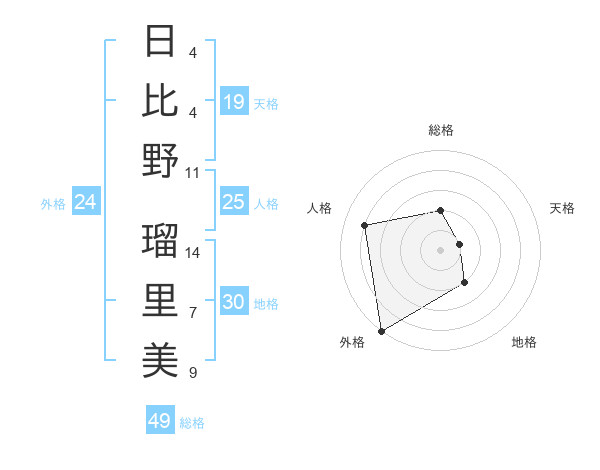 日比野 瑠里美さんを姓名の画数から五運を鑑定