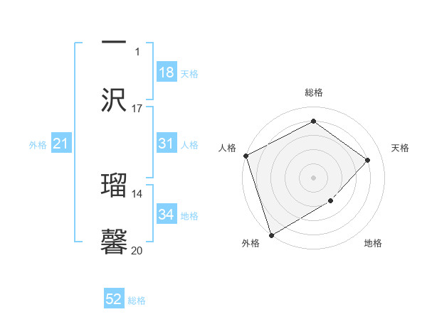 一沢 瑠馨さんを姓名の画数から五運を鑑定