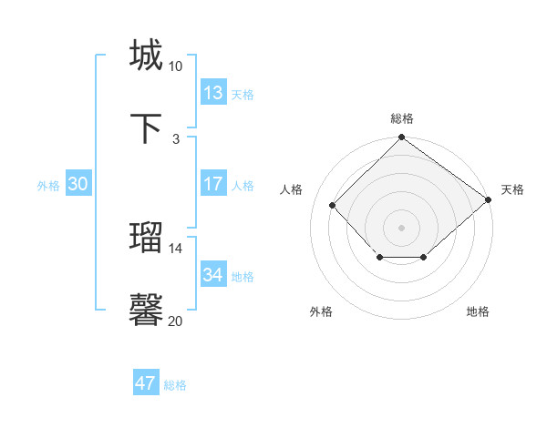 城下 瑠馨さんの天格は13画の5点!