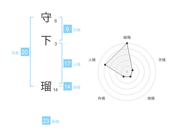 守下 瑠さんの総格は23画の5点!