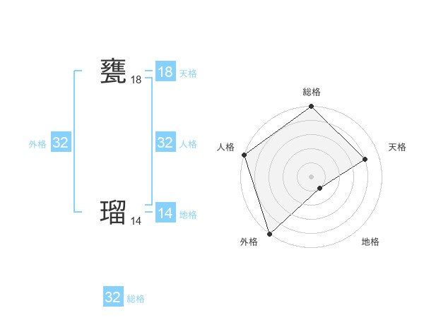 甕 瑠さんの外格は32画の5点!
