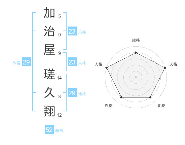 加治屋 瑳久翔さんを姓名の画数から五運を鑑定