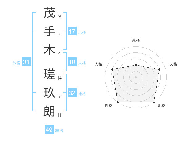 茂手木 瑳玖朗さんの外格は31画の5点!