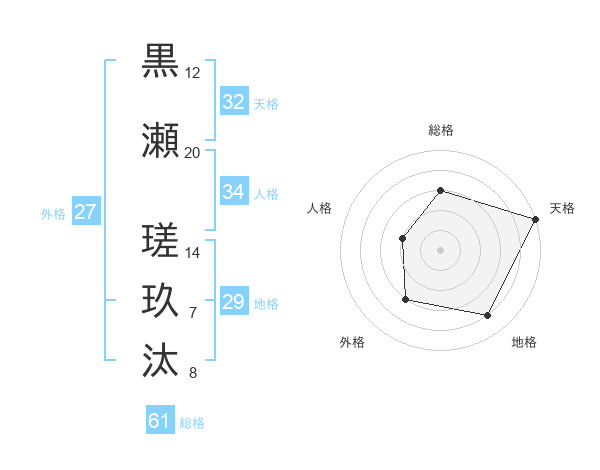 黒瀬 瑳玖汰さんの天格は32画の5点!