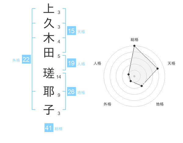 上久木田 瑳耶子さんを姓名の画数から五運を鑑定