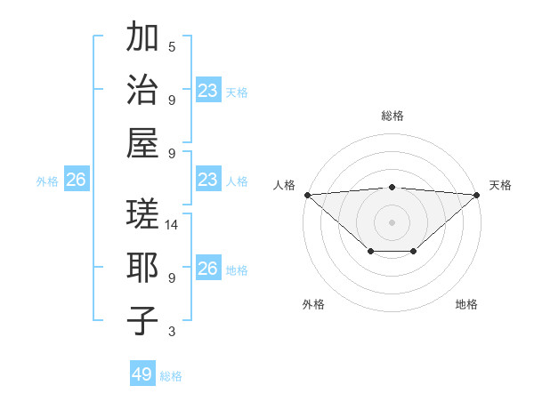 加治屋 瑳耶子さんの天格は23画の5点