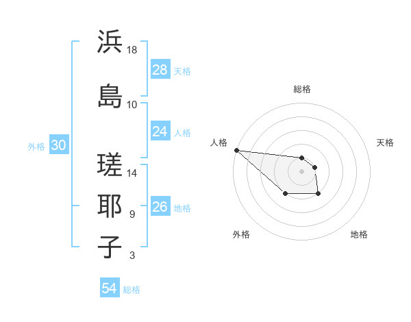 浜島 瑳耶子さんの人格は24画の5点