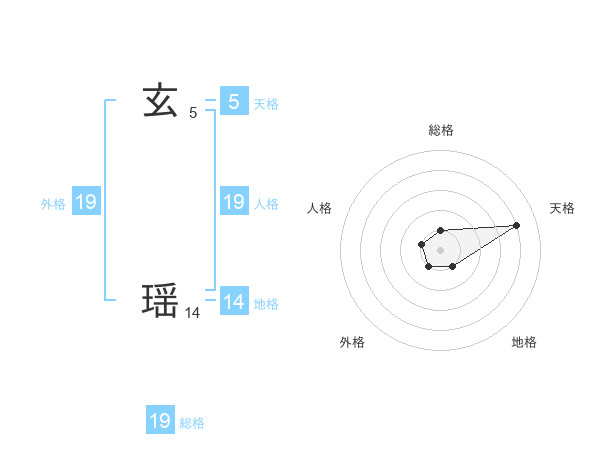 玄 瑶さんの外格は19画の1点!