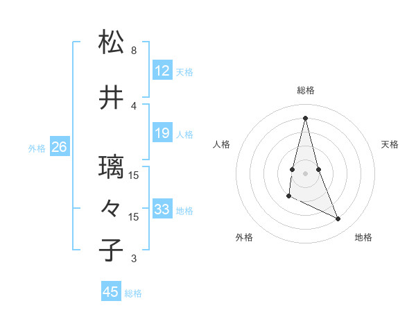 松井 璃々子さんを姓名の画数から五運を鑑定