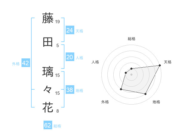 藤田 璃々花さんを姓名の画数から五運を鑑定