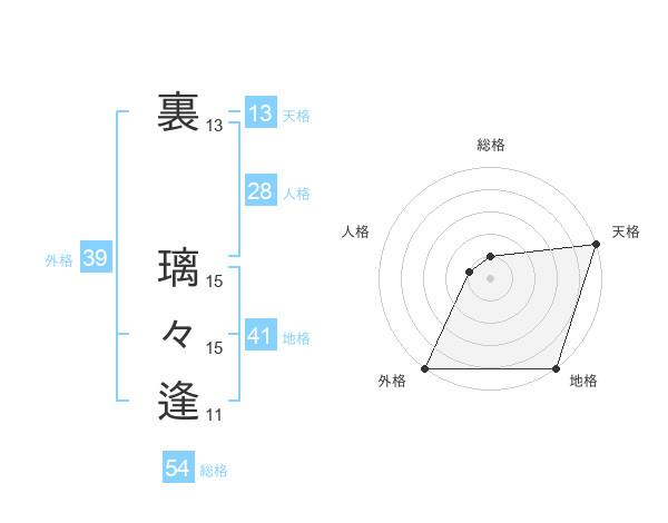 裏 璃々逢さんを姓名の画数から五運を鑑定