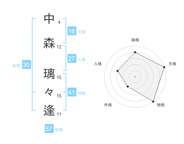中森 璃々逢さんを姓名の画数から五運を鑑定