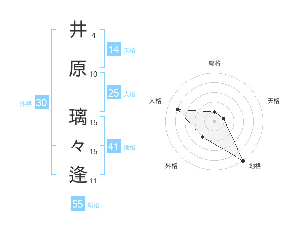 井原 璃々逢さんの地格は41画の5点!