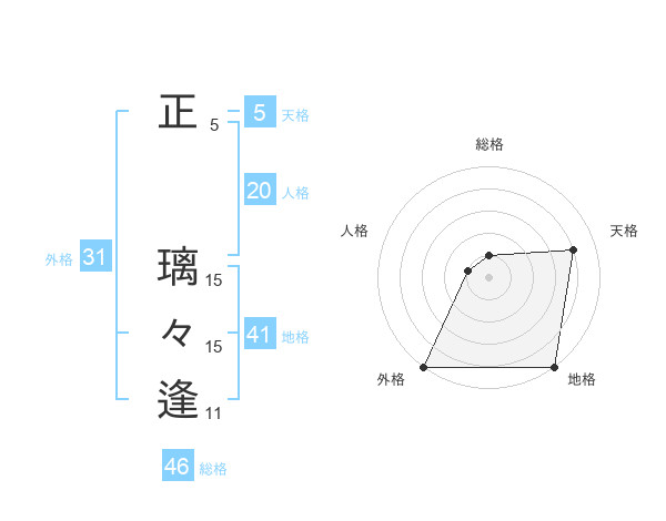 正 璃々逢さんを姓名の画数から五運を鑑定