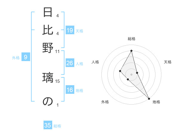 日比野 璃のさんの地格は16画の5点!