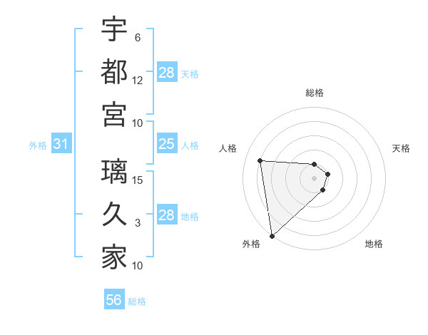 宇都宮 璃久家さんを姓名の画数から五運を鑑定