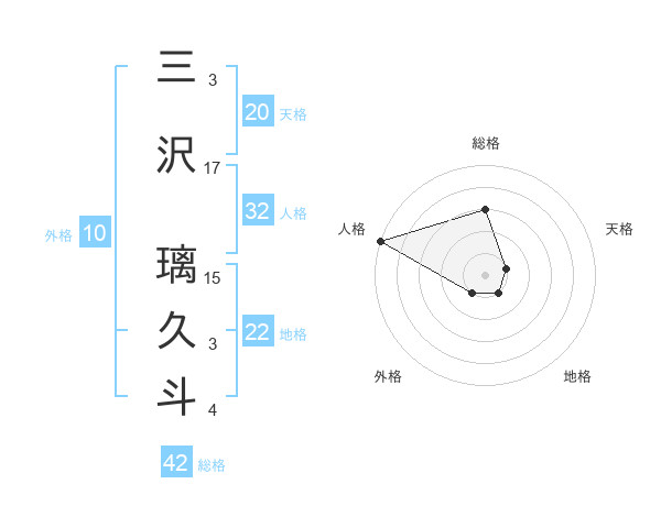 三沢 璃久斗さんの総格は42画の3点!