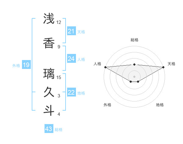 浅香 璃久斗さんの天格は21画の5点!