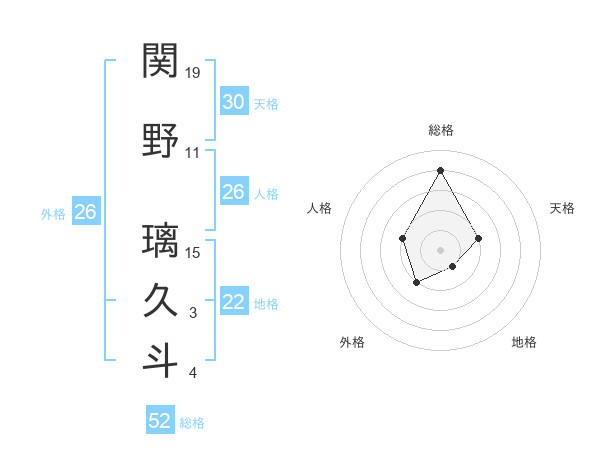 関野 璃久斗さんの総格は52画の4点!