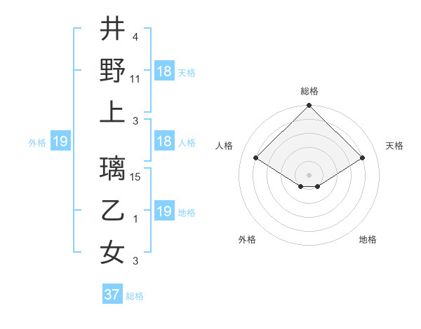 井野上 璃乙女さんを姓名の画数から五運を鑑定