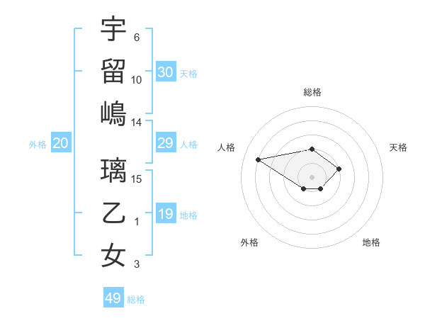 宇留嶋 璃乙女さんの総格は49画の2点!