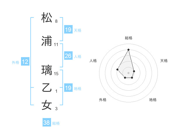 松浦 璃乙女さんの総格は38画の4点
