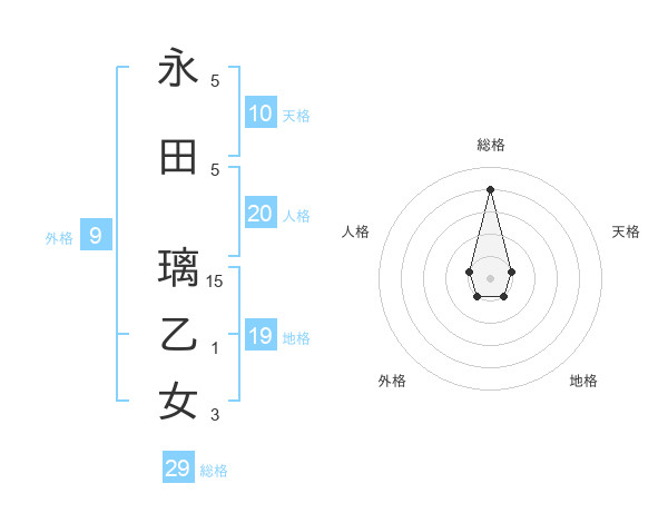 永田 璃乙女さんの総格は29画の4点!