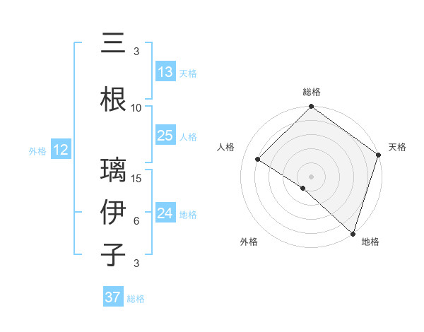 三根 璃伊子さんを姓名の画数から五運を鑑定