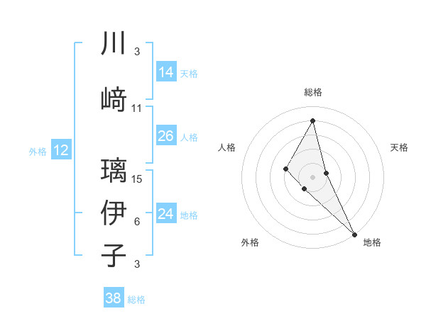 川﨑 璃伊子さんの総格は38画の4点!