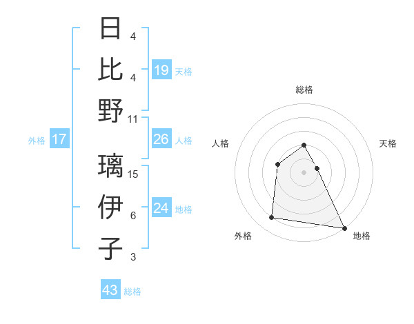 日比野 璃伊子さんを姓名の画数から五運を鑑定