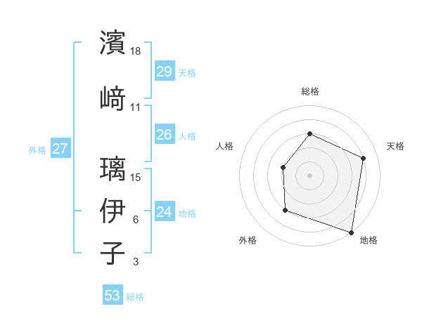 濱﨑 璃伊子さんを姓名の画数から五運を鑑定