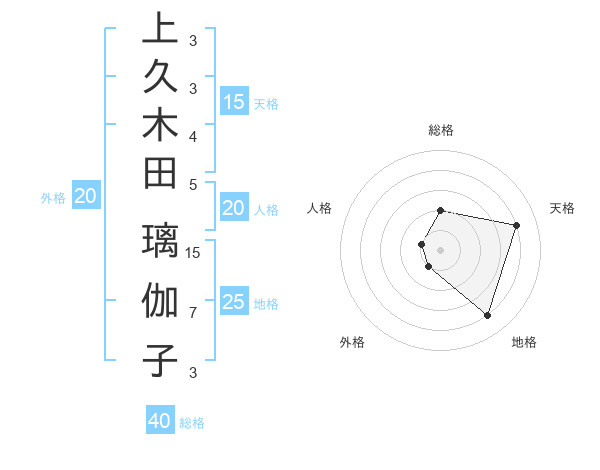 上久木田 璃伽子さんを姓名の画数から五運を鑑定