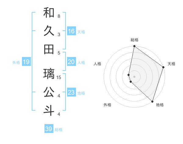 和久田 璃公斗さんの総格は39画の5点!