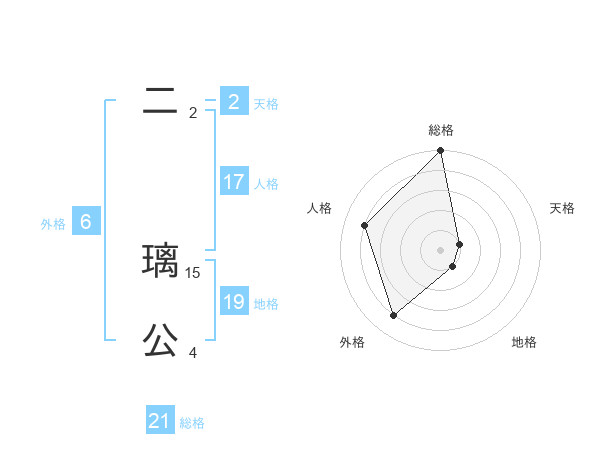 二 璃公さんの総格は21画の5点!