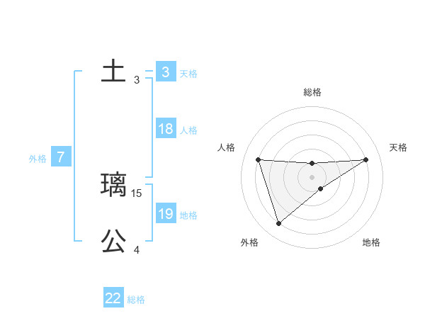 土 璃公さんの総格は22画の1点!