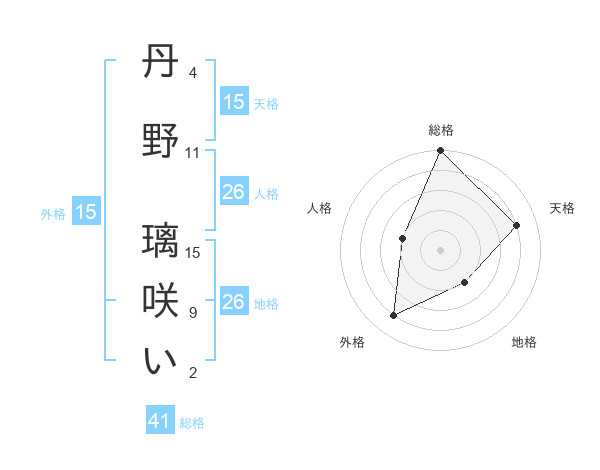 丹野 璃咲いさんの外格は15画の4点!
