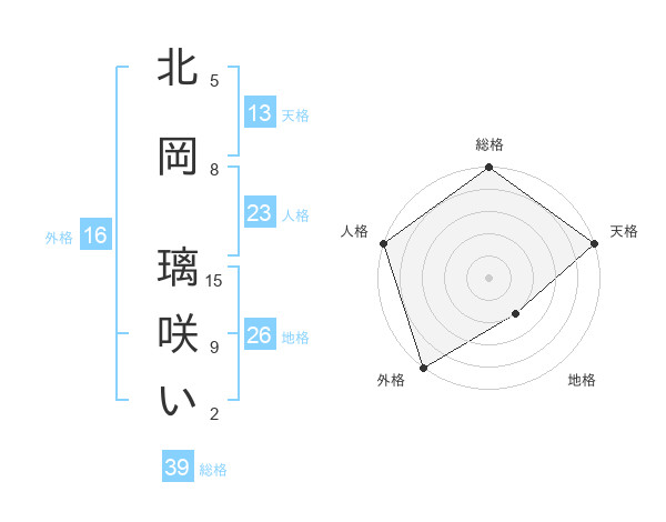 北岡 璃咲いさんを姓名の画数から五運を鑑定